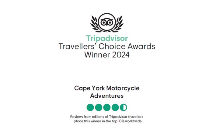 Our Journey to Becoming a 2024 TripAdvisor Travelers’ Choice Winner We are overjoyed to announce that Cape York Motorcycle Adventures has been bestowed with the prestigious honor again of being named a 2024 TripAdvisor Travelers’ Choice winner! Each year, TripAdvisor, the world’s largest travel platform, bestows the Travelers’ Choice award upon businesses that consistently receive outstanding reviews from travelers worldwide. This recognition not only reflects the collective voice of our cherished guests but also exemplifies our dedication to delivering memorable and enriching experiences. At Cape York Motorcycle Adventures, we have always strived to go above and beyond in creating moments